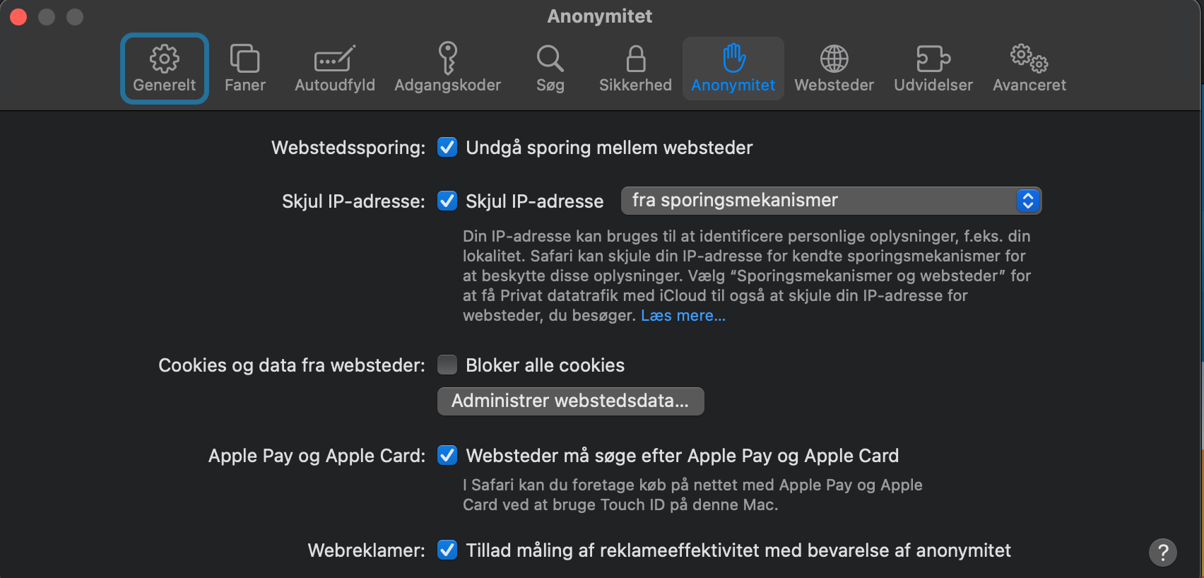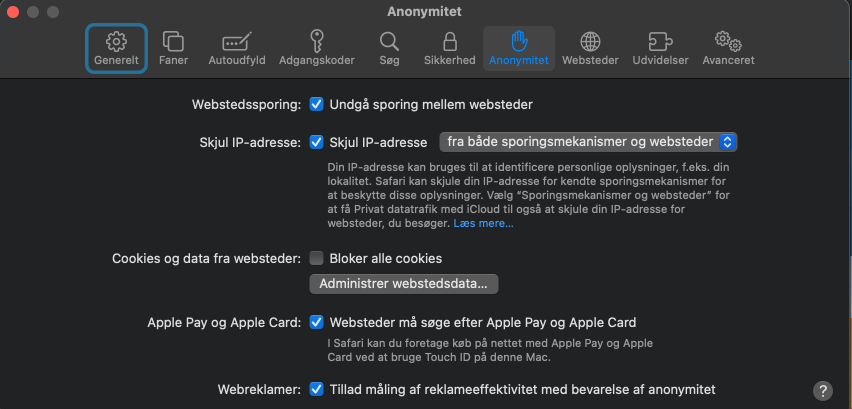 Fandt så ud af hvis jeg ændrede: Skjul min IP-adresse fra både sporingsmekanismer og websteder. Til Skjul min IP-adresse fra sporingsmekanismer. Så virkede MitID igen på min netbank i Safari.