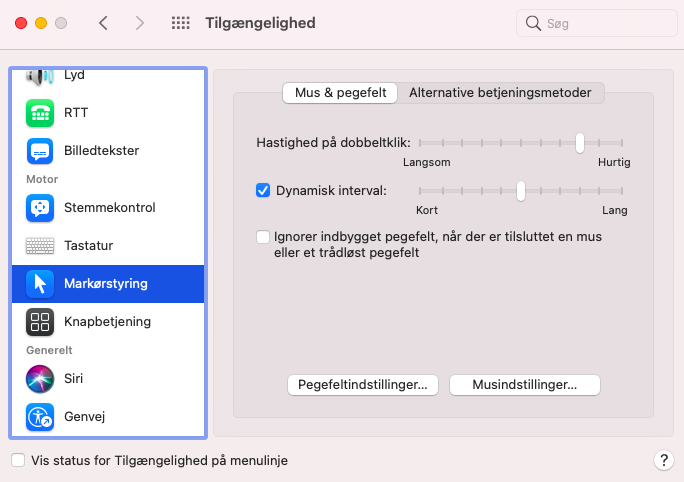 Men ellers kan du slå den indbyggede trackpad fra, når ekstern mus er tilsluttet under tilgængelighedsindstillinger.