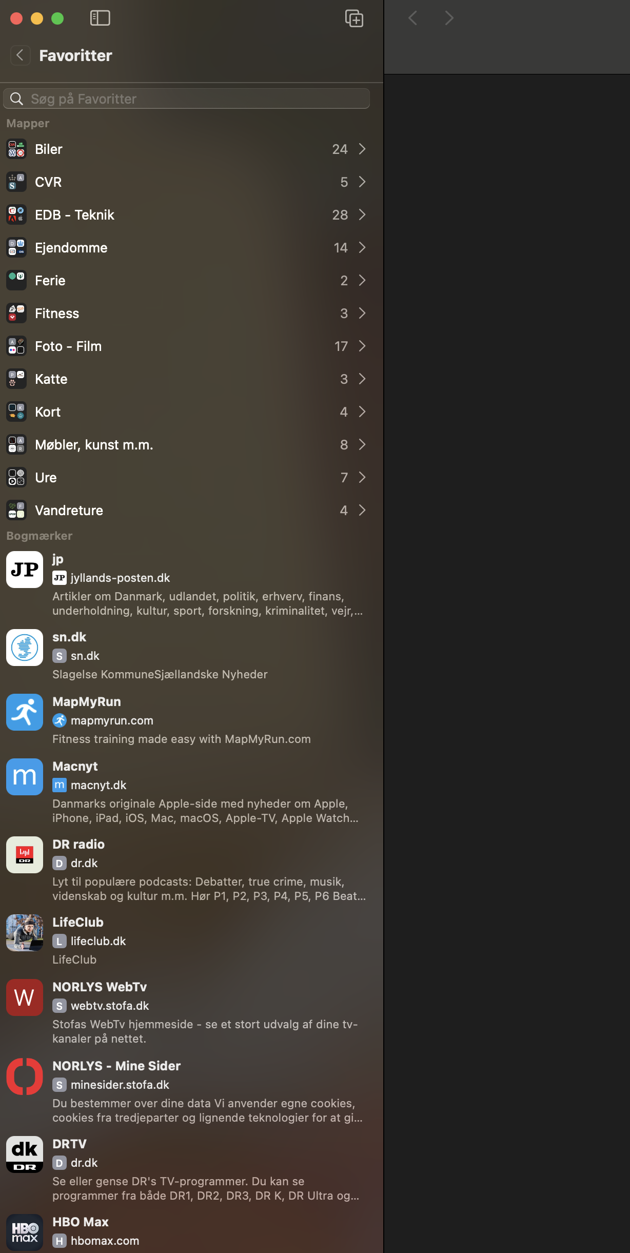 Jeg brokker videre... Når jeg åbner Safari får jeg først billed 1, så vælger jeg favoritter og får billed 2 og der er som jeg skrev Mapper øverst og Bogmærker nederst - og jeg har ikke kunne finde ud af, at få Bogmærker øverst og Mapper nederst. Tidligere når jeg åbnede Safari kom billed 2 frem med det samme, dog med Bogmærker øverst og Mapper nederst. Det er så nok noget jeg bare skal finde mig i som en "genial" opdatering.