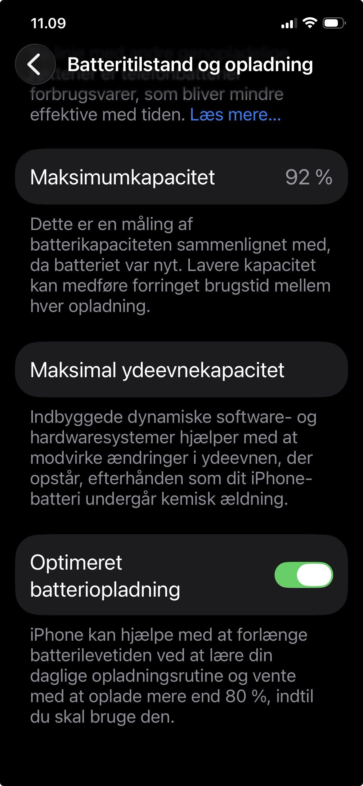 Og min fon er to år yngre end din, så jeg er meget imponeret over dit batteris helbred og maks kapacitet.
