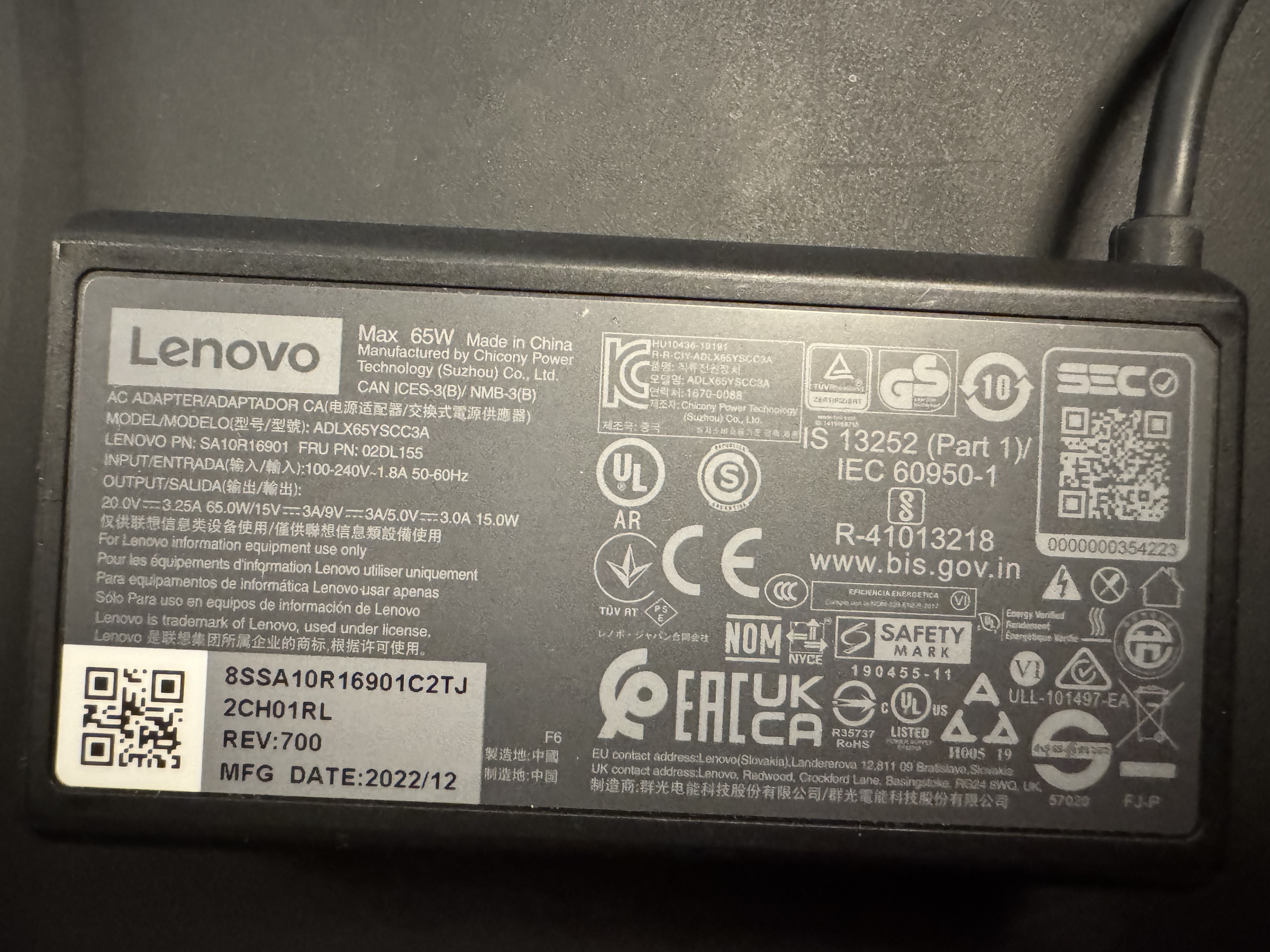 Da jeg har en Lenovo T14 og en MacBook Pro M1 Max med mig på farten, vil det være nemt at bruge denne lader der fulgte med min Lenovo T14 da den har USB-C.
